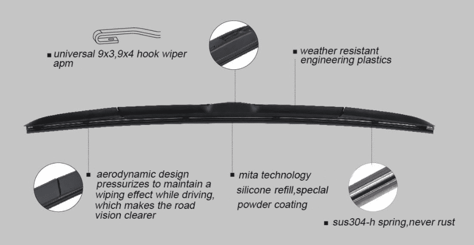 Mita silicone wiper blades make water bead up into droplets. In use, through the gap between the droplets, we can obtain a much broader and farther field of view,which greatly improves the safety factor of driving.